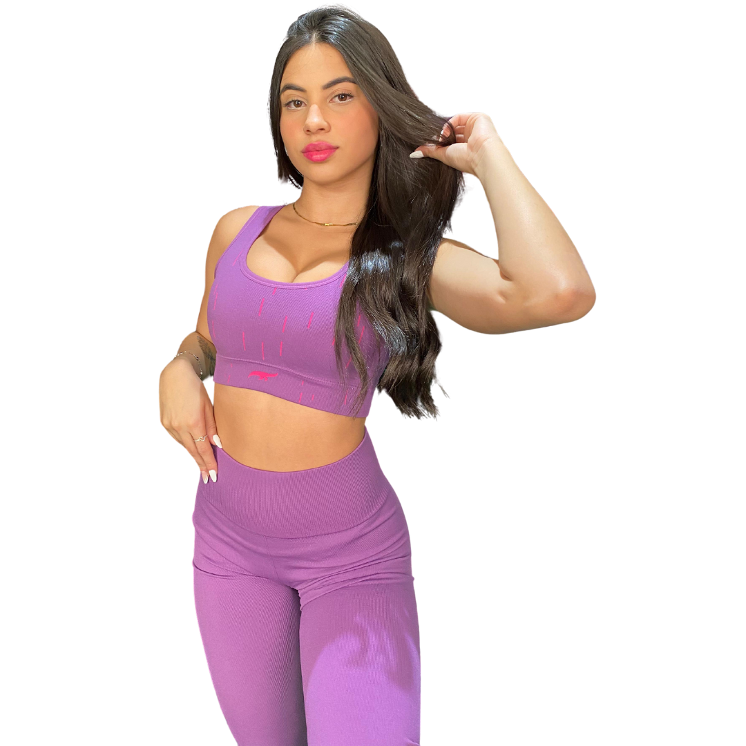 Top Com Bojo Fitness Jacquard Riscado com Bojo Removível sem Costura Tulipa Lillás, possui desenho de jacquard exclusivo e com muita referência de moda!